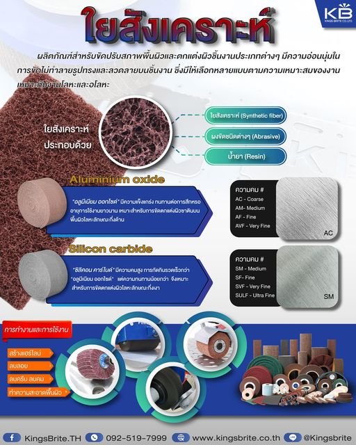 • ความโดดเด่นของใยขัดสังเคราะห์ คือ มีความอ่อนนุ่ม ไม่ทำลายรูปทรงของชิ้นงาน และ วัตถุดิบมีความหยาบ-ละเอียด ให้เลือกหลายระดับ