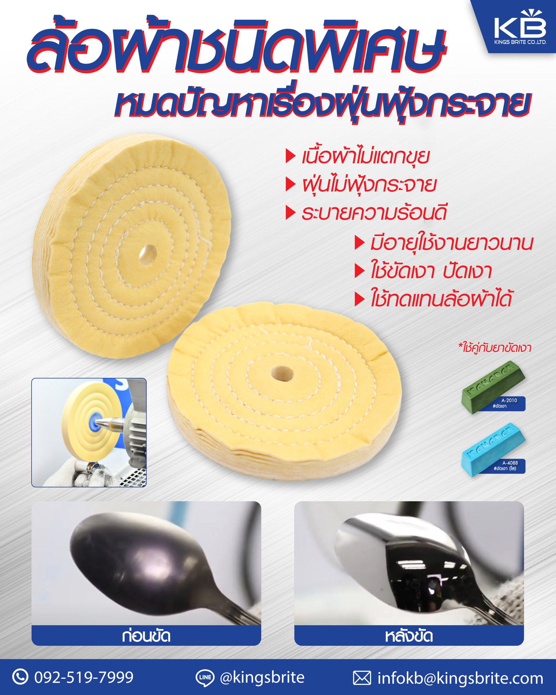 ล้อผ้าชนิดพิเศษนี้ ใช้สำหรับปัดเงา โดยผ้าที่นำมาผลิตเป็นล้อนั้น มีคุณสมบัติที่มากกว่าผ้าทั่วไป ความพิเศษ และ คุณสมบัติ ดังนี้